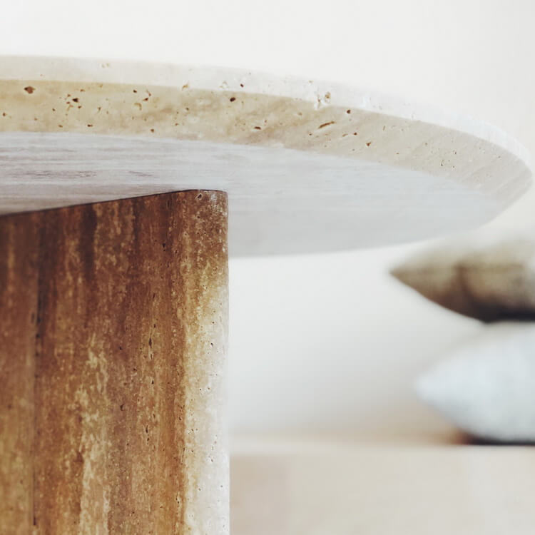 This table is made from beautiful beige travertine, a natural stone with a unique texture. The tabletop has a fun coffee bean shape, making it...