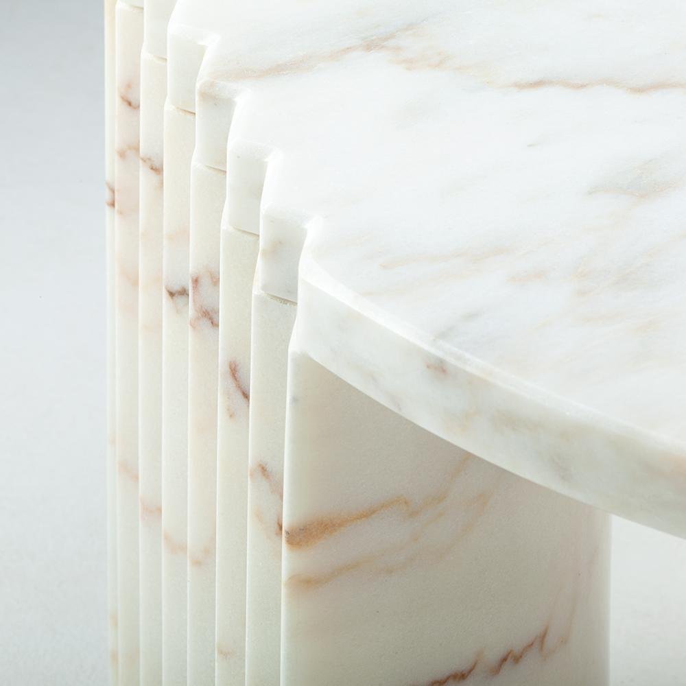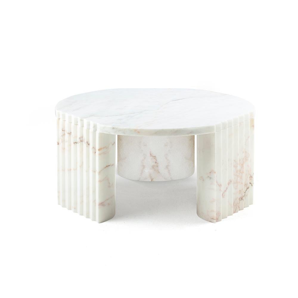 Caravel Marble Table — a sculptural low table inspired by the billowing sails of Portuguese caravels. Hand-crafted in Portugal, its gleaming white-marble top rests on a fluid rattan-and-walnut base, merging enduring stone with warm organic curves. At once coffee table and conversation piece, it brings the spirit of oceanic discovery to any contemporary living space.